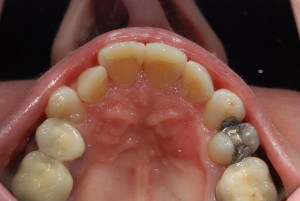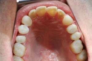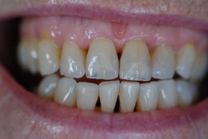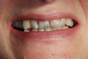 SOLUTION: A strong composite resin was bonded to the canines, premolars and molars. Amalgam/mercury fillings were first removed and replaced. The 10 teeth were rebuilt and sculpted in about 3 hours.